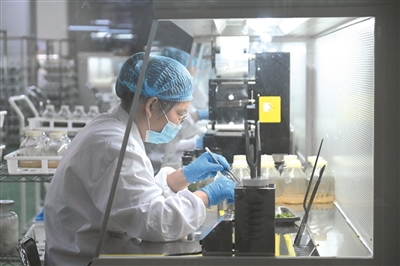左图为企业员工正在进行电商直播;下图为企业博士人才进行花卉育种工作。