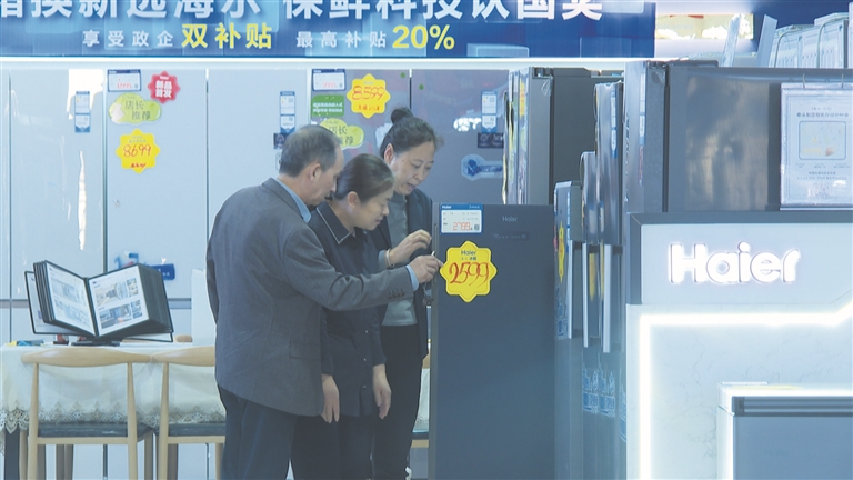 三联家电青州分公司总经理郑晓龙介绍说:“通过线上线下相结合的宣传方式,大力宣传活动政策。同时,我们也会叠加商场本身的优惠,在国补的基础上进一步做直降优惠。自9月中旬以来,我们的销售额、销售数量都有了很大提升。”