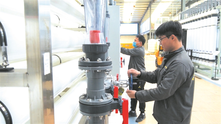 公司经理刘阳告诉记者,这款反渗透净水设备搭载的是物联网技术的净水系统,可实现远程监控和能耗的优化,较传统的设备节能30%以上。该设备已广泛应用于海水淡化项目、工业化项目、电子材料制造项目等领域,日处理量达到千吨级,技术指标达到国际领先水平。