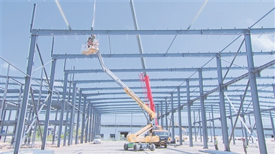 在青州大立方工贸有限公司智慧温控系统平台研发制造项目现场,记者看到,车间钢结构主体已基本完成,施工人员正加紧进行檩条的安装作业,计划12月份投入使用。