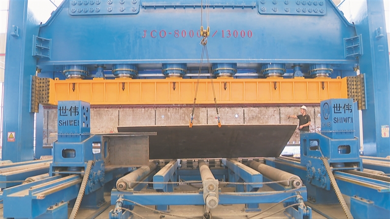 世伟工贸集团有限公司总经理助理刘宇轩介绍说:“公司目前核心业务板块为大口径厚壁特材直缝管,产品销往全国各地以及东南亚、中东、非洲等国外地区。目前,公司排产量可达每月3000吨,订单已经排到了四季度。”