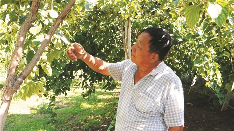 采摘园负责人徐福中正忙着管护果树,迎接采摘季即将到来的大批游客。他告诉记者,现在软枣猕猴桃已经陆续进入收获季,今年是软枣猕猴桃挂果的第2年,价格稳定,收益十分可观。
